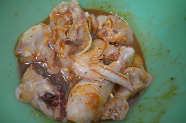 Semua bahan-bahan tu masukkan sekali dan gaul pakai tangan sambil urut-urut ayam tersebut. Oh lupa nak cakap jangan lupa cucuk ayam tu dengan garfu supaya bahan perapan tu akan masuk sampai ke tulang.